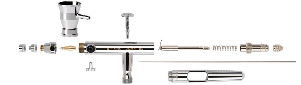Iwata Eclipse благодаря конструкции сопла отлично подходит для распыления крупнодисперсных красок, металликов, перламутров и любых других красок.