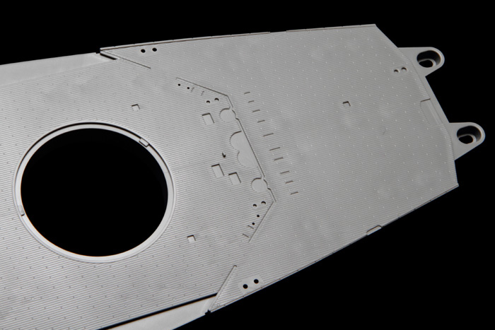 Фототравлёные детали для мачт, межбалубных лестниц, вентиляционных решёток, радара, мачты крана, катапульт и катапультных тележек, различных креплений и проработки множества мелких деталей.